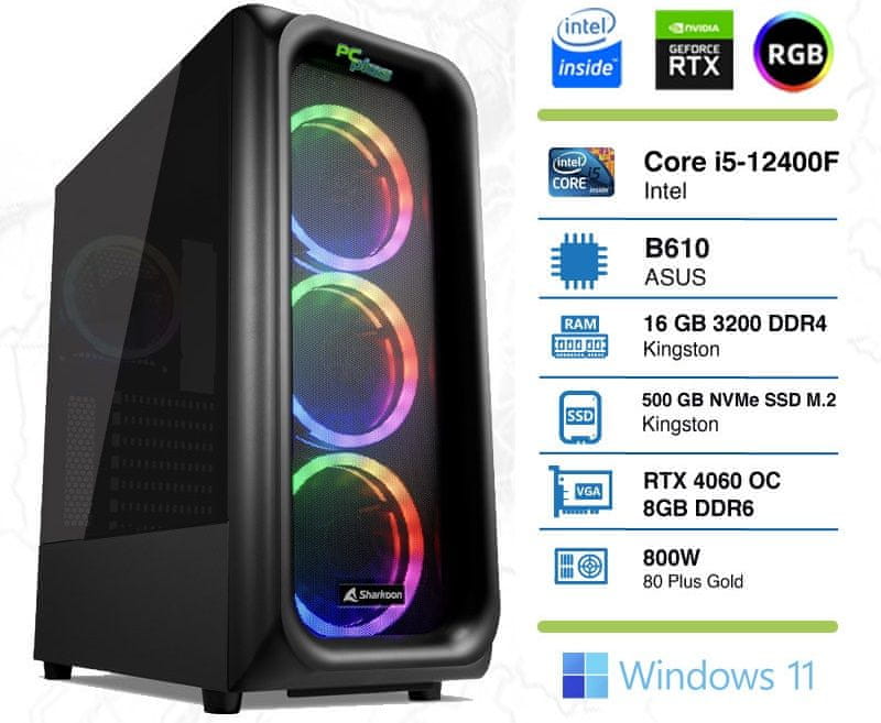 PCplus Storm stolno računalo, i5-12400F, 16GB, 500GB, RTX4060, W11H (145006)