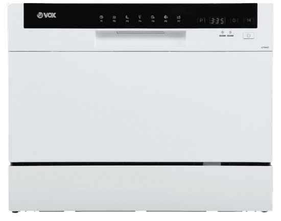Stolna perilica posuđa Vox Electronics LCT6WD ima energetsku klasu D i potrošnju energije od 0,494 kWh po standardnom ciklusu. S kapacitetom do 6 mjesta i širinom od 55 cm, posebno je prikladna za manje kuhinje. Opremljena je sa sedam programa pranja: Eco, Glass, 90 minuta, Quick 30 minuta, Intenzivni 65 °C, Univerzalni i Samočišćenje.