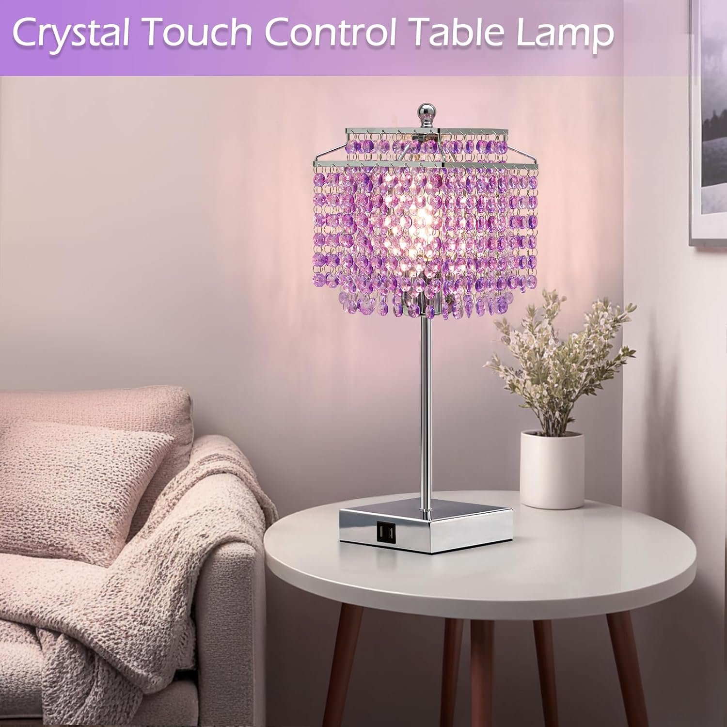 Nikcorp Kristalna stolna svjetiljka na dodir s 3 razine svjetline, USB punjačem i LED žaruljom, elegantna noćna lampa