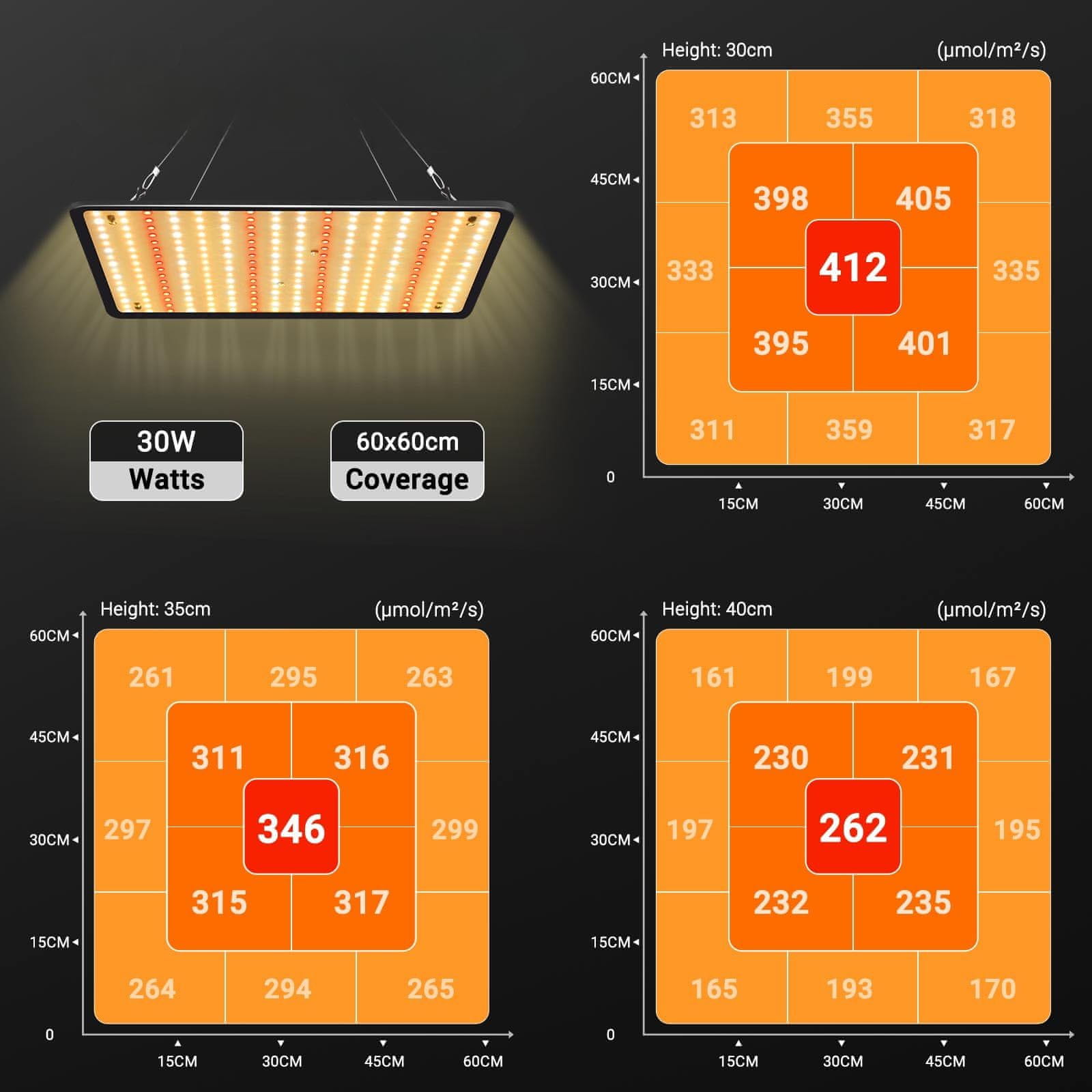 LED Lampa za Uzgoj Biljaka 30W (30×30 cm) s punim spektrom svjetla (UV/IR) osigurava optimalan rast, cvjetanje i žetvu. Pokriva 60×60 cm, štedi energiju (zamjenjuje 100W HPS) i spremna je za upotrebu.