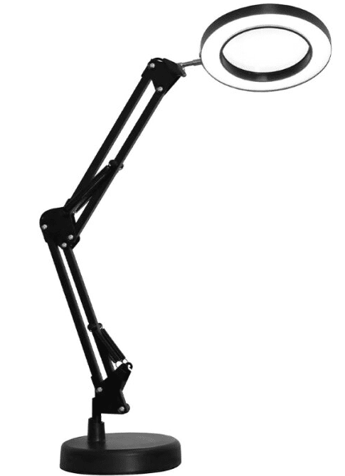 Stolna lampa opremljena je pomičnim krakom, zahvaljujući kojem možete podesiti kut upada svjetlosti, a ima i ugrađeno povećalo u svjetlosnom prstenu. Stolna lampa se napaja putem USB kabela.