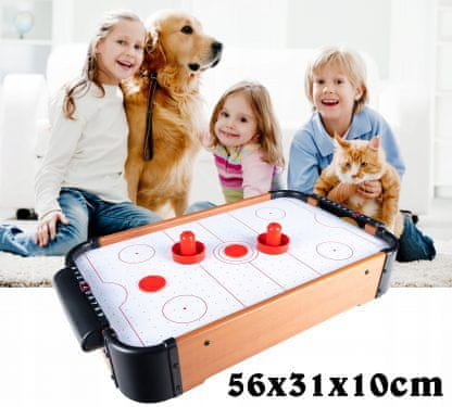 - DESKTOP VERZIJA IGRE – atraktivna verzija popularne igrice air hockey omogućit će vam da u igri uživate kod kuće i bilo kada. Pružit će puno emocija. Set za zračni hokej sastoji se od stola, 2 branika, 2 paka i 2 gola. Arkadna igra je fantastičan način za zanimljivo provođenje vremena za djecu i odrasle. Pruža puno dojmova i emocija.
