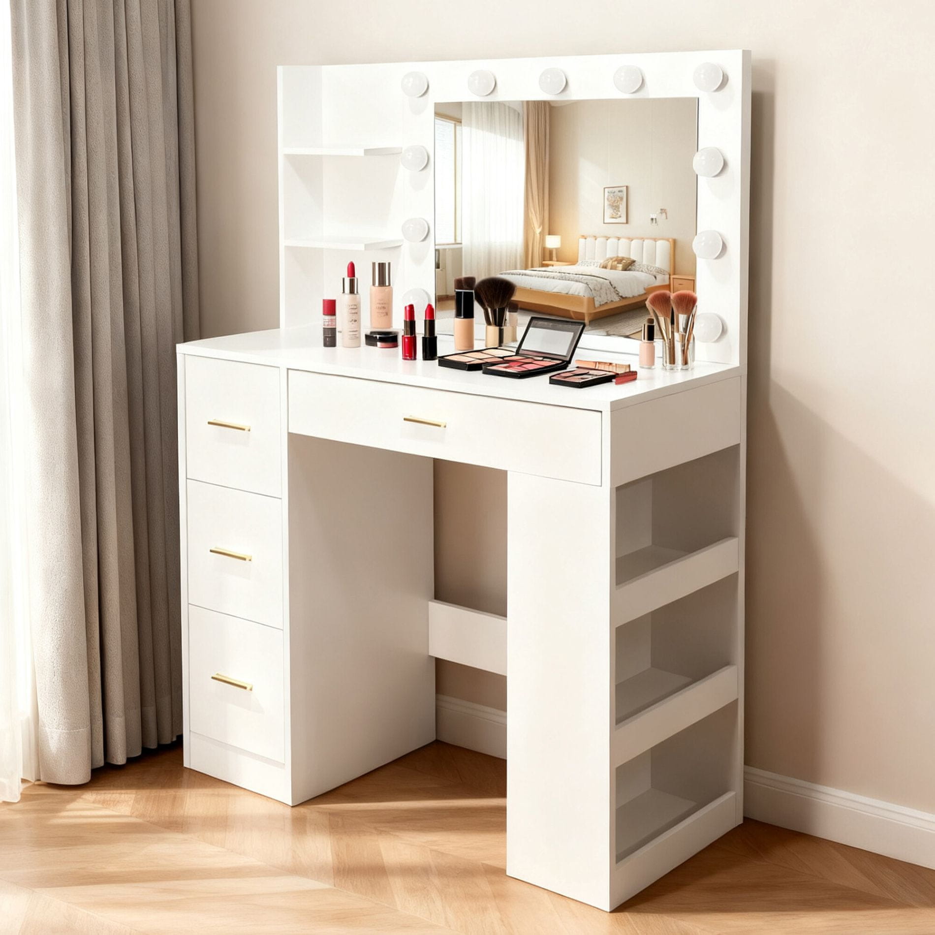 Priuštite si svakodnevnu dozu luksuza s ovim modernim toaletnim stolićem s ogledalom i LED rasvjetom. Stilski bijeli stolić u mat izvedbi postat će ne samo praktičan, već i estetski dodatak svakoj spavaćoj sobi ili garderobi.