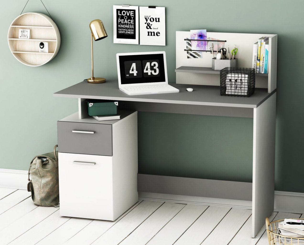 Radni stol PLATON 182294 u bijeloj i sivoj boji idealan je odabir za svaku radnu prostoriju. Njegov kompaktni dizajn i kvalitetni materijali jamče dugotrajnu upotrebu.
