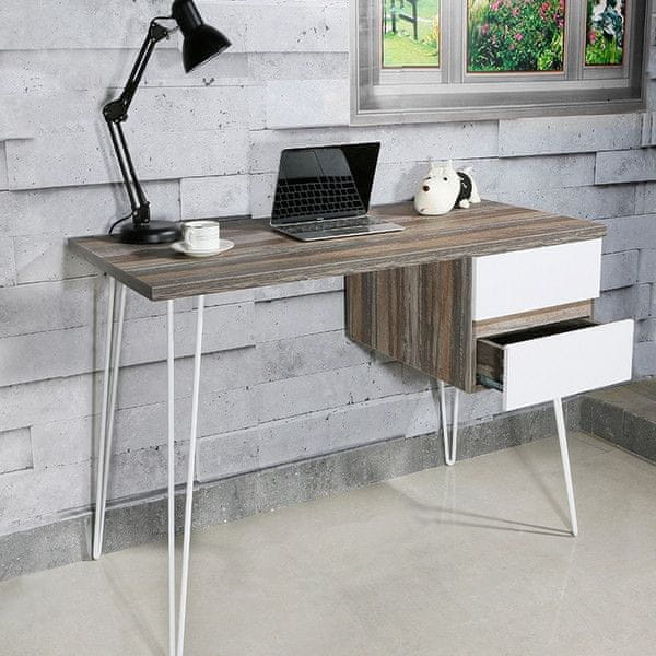 Radni stol Tiara izgledat će sjajno u svakom uredu i sobi za mlade, jer se može pohvaliti minimalističkim i modernim dizajnom. Kombinacija orahovog drveta s bijelim nogama lako se kombinira s drugim bojama u prostoriji i unosi joj moderniji stil. Radni stol uključuje dvije zgodne ladice za spremanje školskog i uredskog pribora, tako da vaša radna površina uvijek može biti uredna i pospremljena.