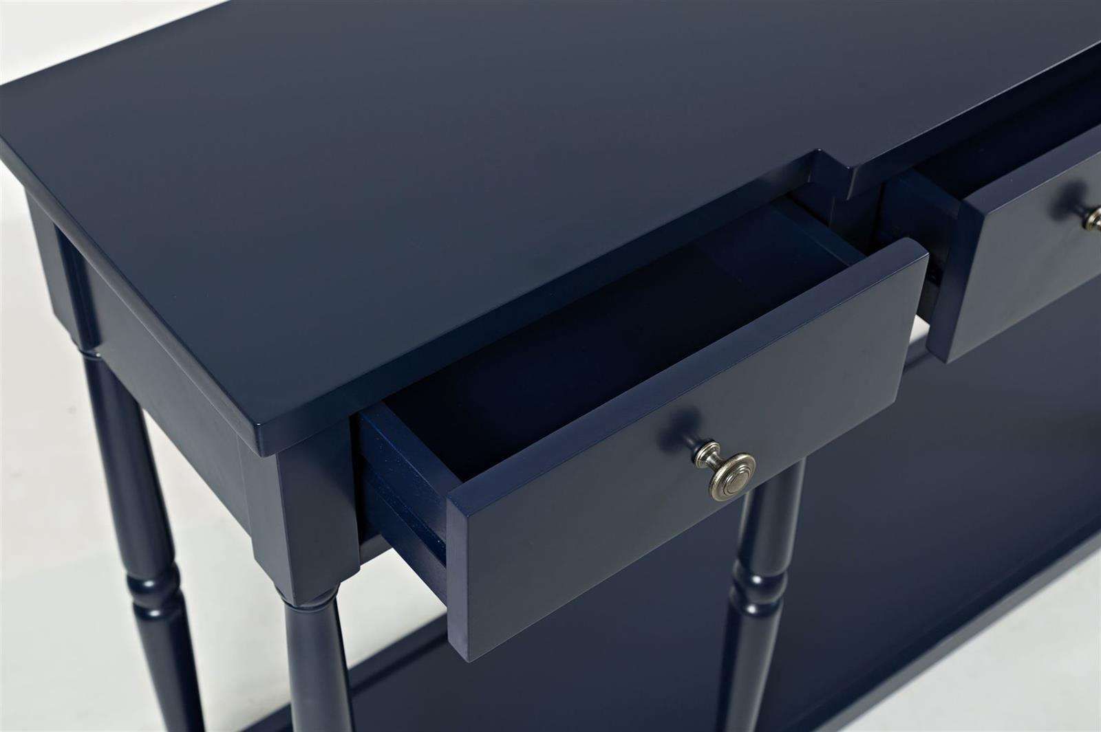 Elegantno dizajniran u Hampton stilu ovaj konzolni stolić ima profilirane noge i ujednačenu boju što ga čini profinjenim dodatkom svakom dnevnom boravku hodniku ili ulaznom prostoru. Nudi praktično odlaganje s funkcionalnim ladicama i policom kombinirajući stil i funkcionalnost za organizaciju svakodnevnih potrepština. Konzola je djelomično sastavljena radi lakšeg postavljanja i izrađena od kvalitetnih materijala za dugotrajnu izdržljivost.