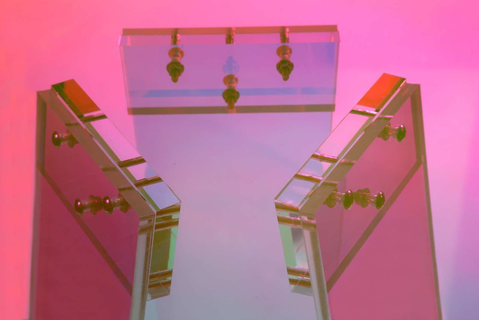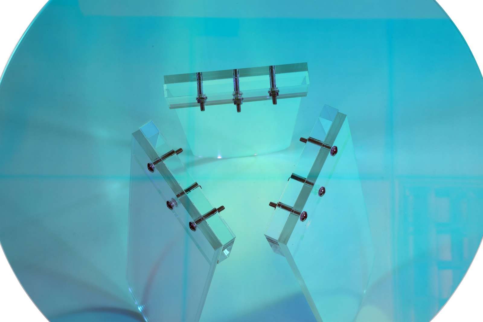 Originalni stol izrađen od prozirnog irizirajućeg akrila nudi jedinstveni vizualni efekt koji se mijenja ovisno o kutu svjetlosti. Njegov jednostavan oblik i lagana konstrukcija čine ga svestranim dodatkom svakom interijeru savršeno se uklapajući u različite stilove i prostore. Idealan kao funkcionalan i dekorativan detalj ovaj stol obogaćuje moderne dnevne boravke spavaće sobe ili urede.