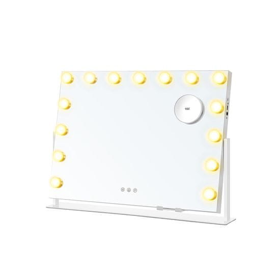 Ovaj osvijetljeni ogledalo za šminkanje dizajnirano je za optimalno osvjetljenje vaše beauty rutine. Sadrži više LED žarulja i praktične dodirne kontrole koje nude razne opcije osvjetljenja i praktične značajke za svakodnevnu upotrebu. Njegov moderan dizajn i integrirani držač za uređaje čine ga prikladnim za toaletne stolove ili prostorije za šminkanje.