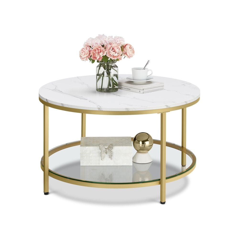 Ovaj moderni stolić za kavu dizajniran je da unaprijedi vaš dnevni boravak stilom i funkcionalnošću. Ima prostranu staklenu ploču i dovoljno prostora za pohranu pružajući praktično rješenje za organizaciju vaših potrepština uz dodavanje suvremenog štiha vašem prostoru. Kombinacija elegantnih površina s izgledom mramora i čvrstog okvira čini ga prikladnim za različite stilove interijera.