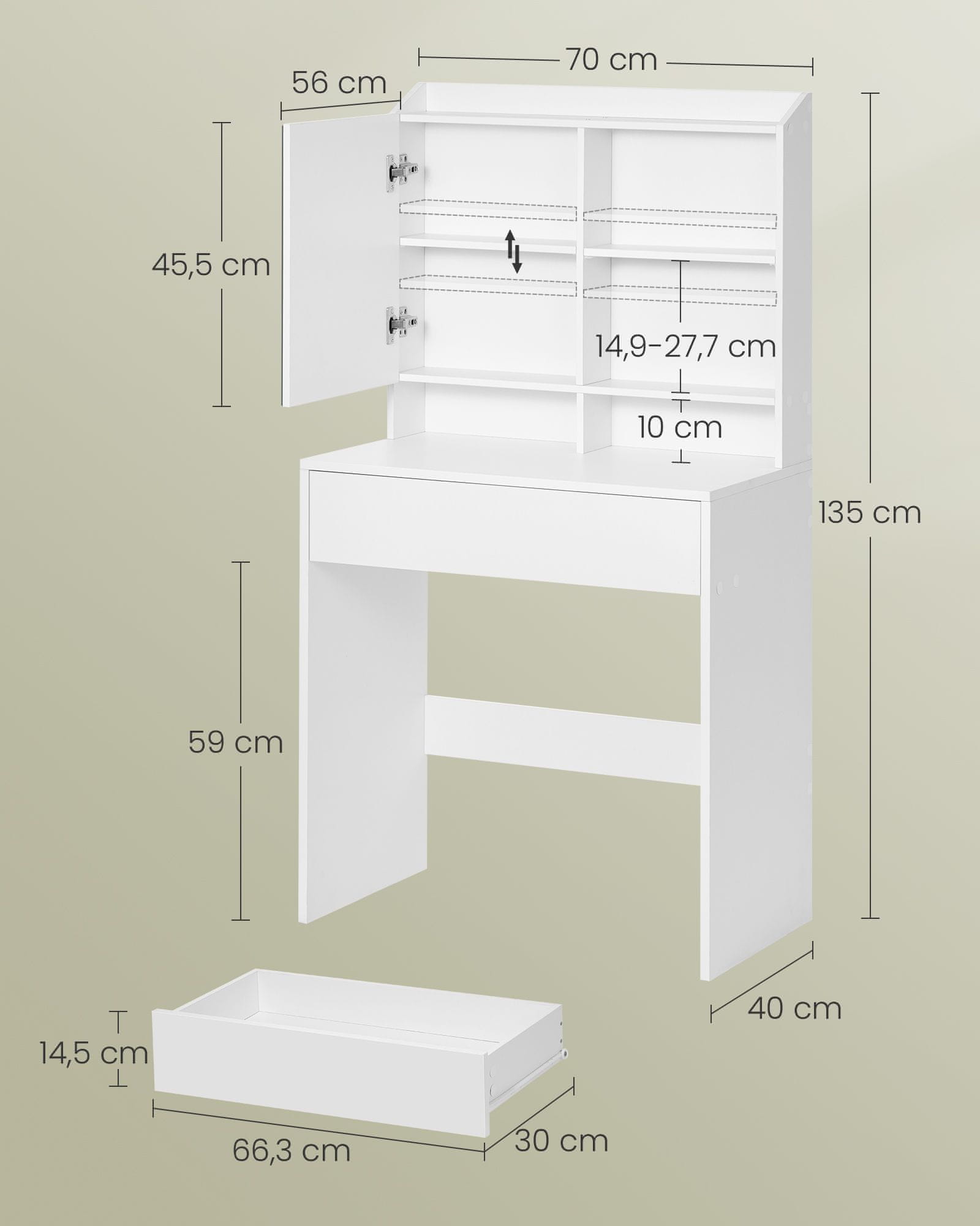Songmics Toaletni stolić 70x40x136 cm bijela
