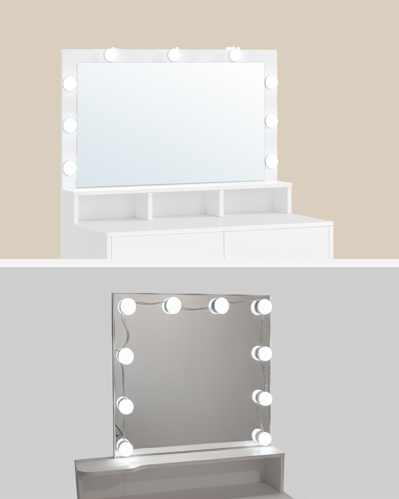 Ovaj moderni toaletni stolić dizajniran je kako bi unaprijedio vašu svakodnevnu rutinu uljepšavanja pružajući dobro osvijetljen i organiziran prostor za šminku i osobnu njegu. Sa svojim elegantnim suvremenim izgledom savršeno se uklapa u različite stilove spavaćih soba i nudi praktična rješenja za pohranu kozmetike i dodataka. Površina koja se lako čisti i promišljen raspored čine ga praktičnim dodatkom svakoj spavaćoj sobi za odrasle.