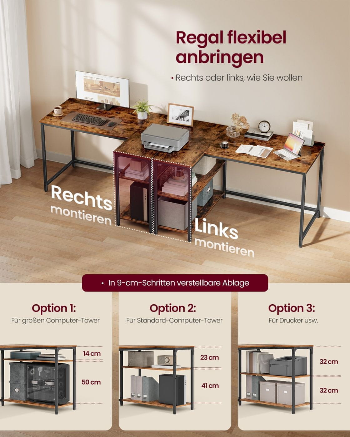 Ovaj L-oblikovani kutni stol dizajniran je za optimizaciju vašeg radnog prostora što ga čini idealnim za kućne urede ili radne prostore za učenje. Njegova integrirana rješenja za pohranu i podesiva polica pružaju fleksibilnost za organizaciju dokumenata uredskog pribora ili opreme. Stol također ima ugrađene AC utičnice i USB priključke što vam omogućuje praktično napajanje i punjenje uređaja dok radite.