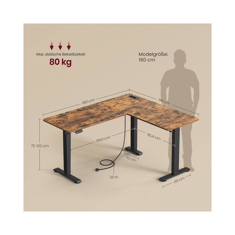 Songmics Visoko podesivi kutni stol 140x160 cm smeđi
