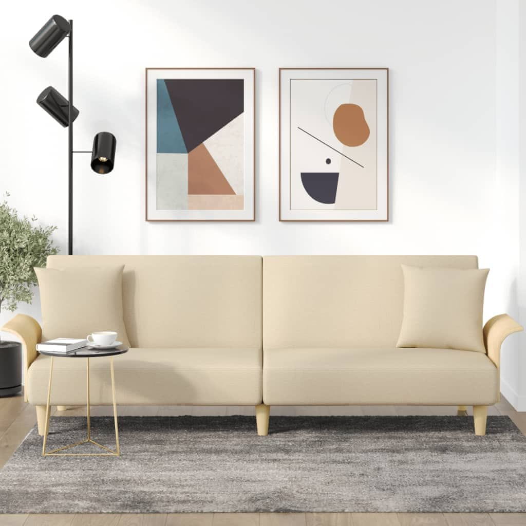 Vidaxl Kauč na razvlačenje s naslonima za ruke krem od tkanine