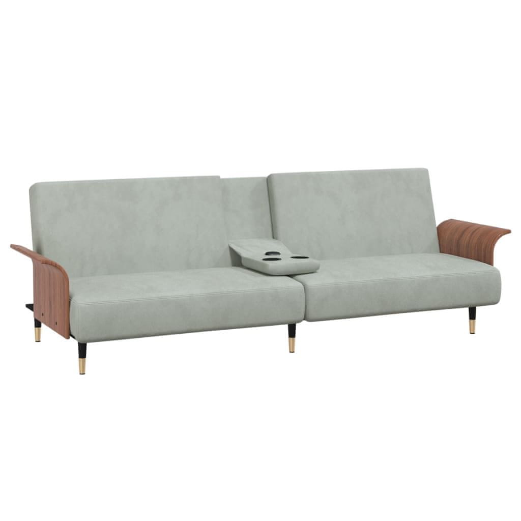 Vidaxl Kauč na razvlačenje s držačima za čaše svjetlosivi baršunasti