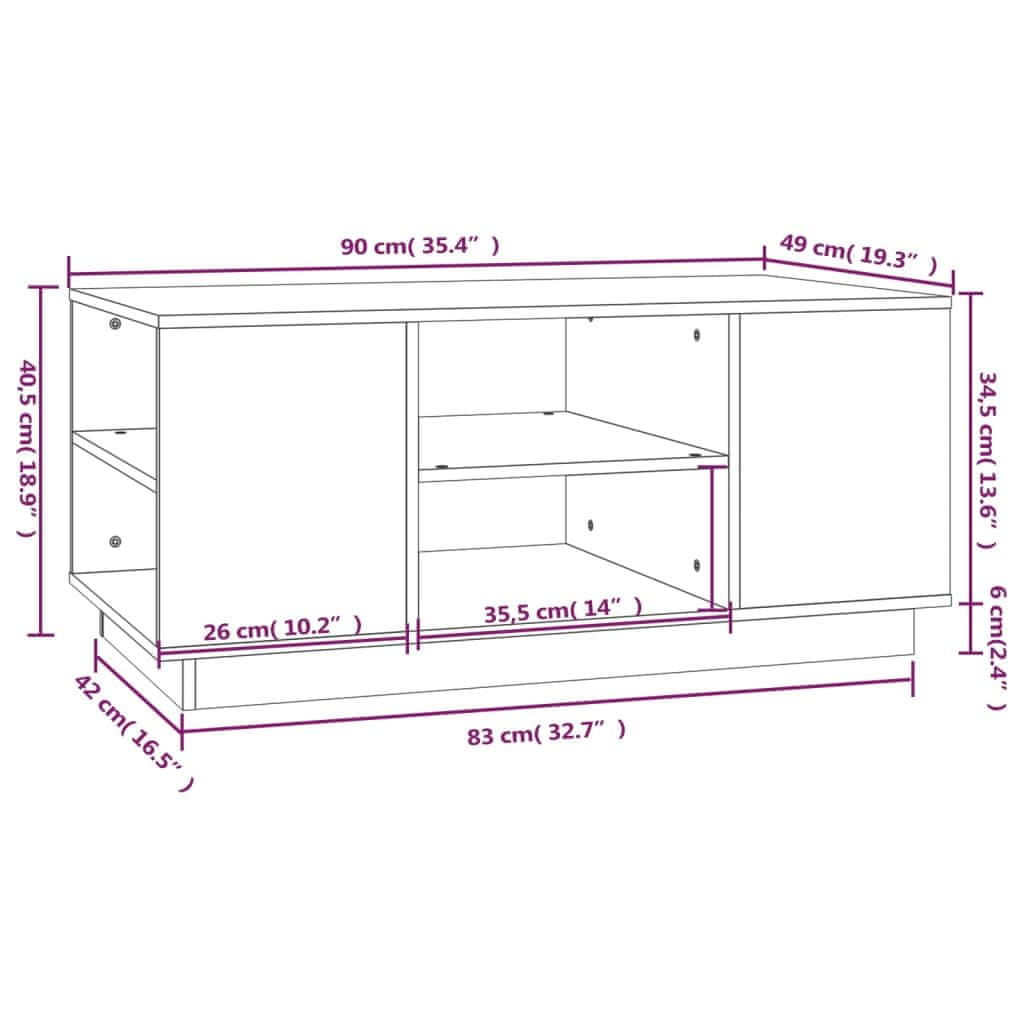 Vidaxl Stolić za kavu 90 x 49 x 40,5 cm od masivne borovine