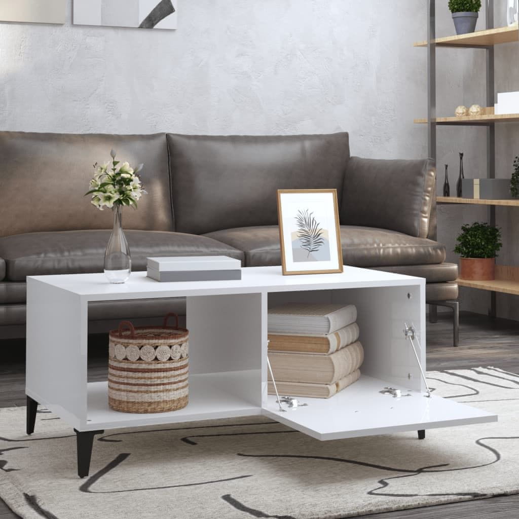 Vidaxl Stolić za kavu sjajni bijeli 90 x 50 x 40 cm konstruirano drvo