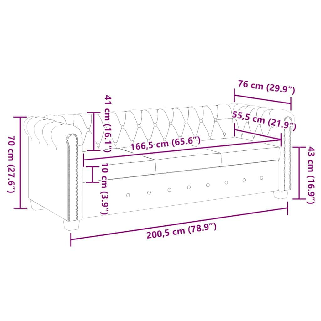Ova sofa Chesterfield savršen je spoj udobnosti i profinjenosti i bit će izvrstan dodatak svakom domu ili uredu. Ovaj trosjed, sa svojim udubljenim detaljima i otmjeno zaobljenim naslonima za ruke, dodat će dašak luksuza, otmjenosti i stila svakom interijeru.