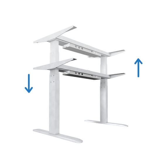 Standardni UVI Desk električno podesivi okvir podesiv je i po visini i po širini. Omogućuje podešavanje širine između 100 i 170 centimetara, a podešavanje visine između 62 i 128 centimetara.