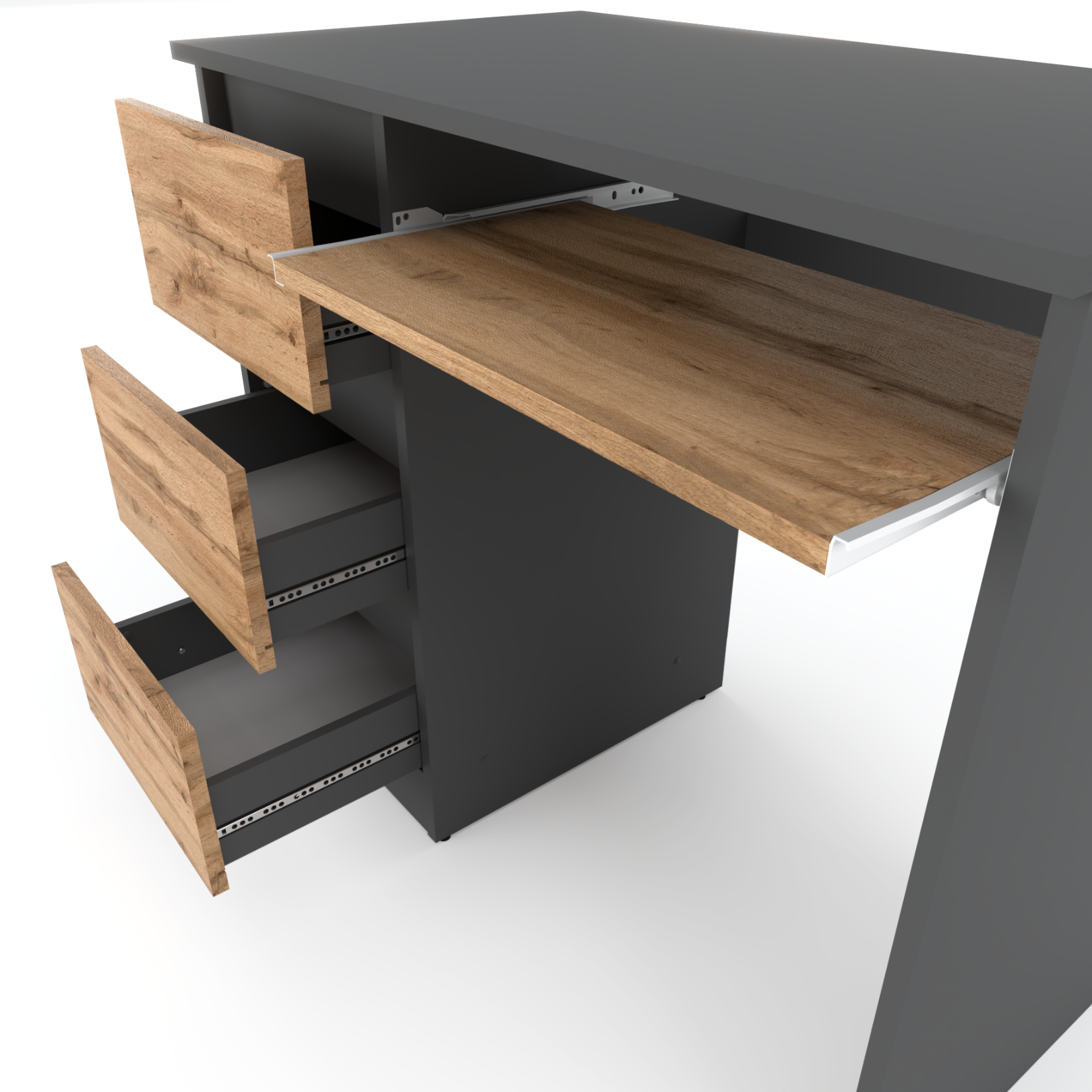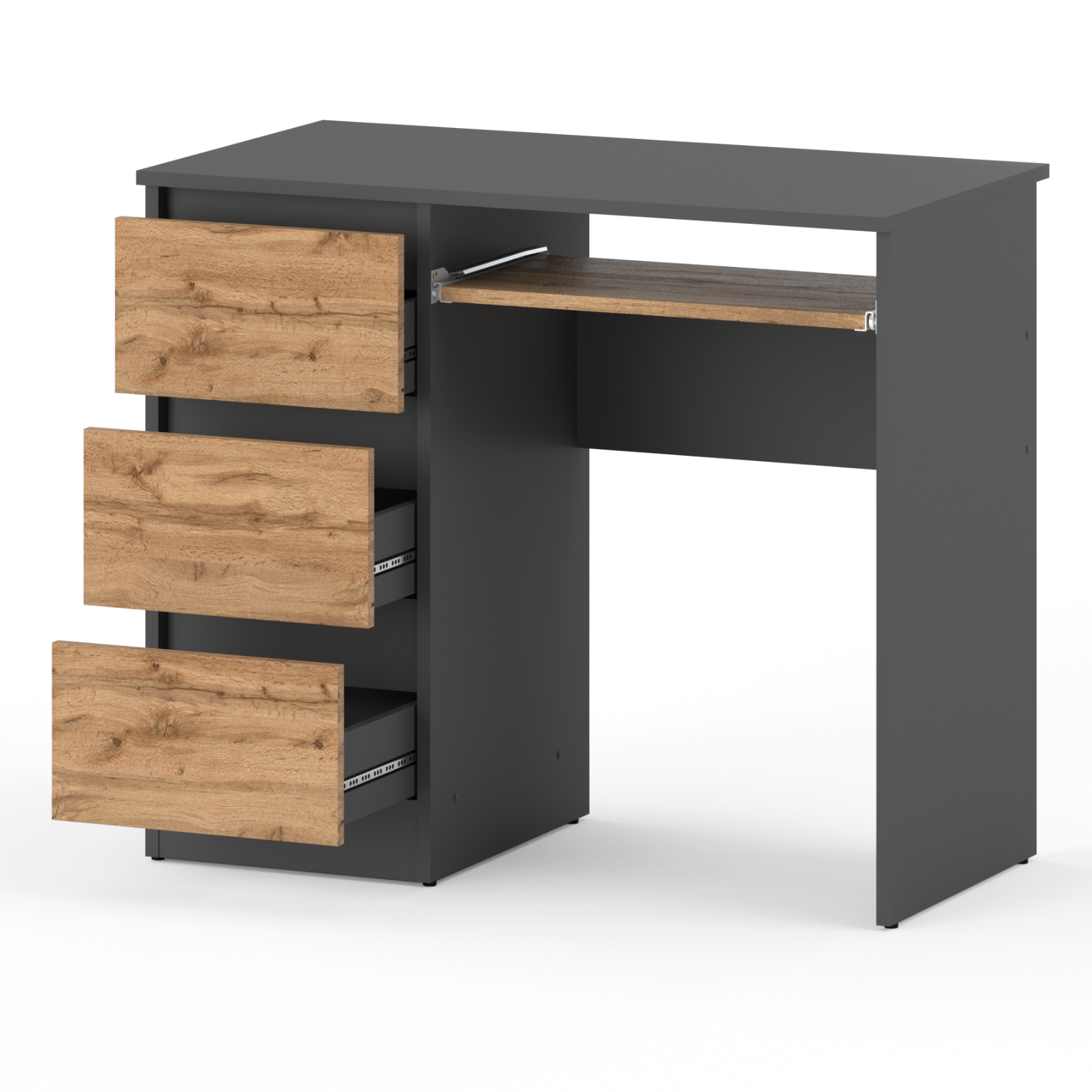 Wotan računalni stol s 3 ladice, 90 cm, sivi hrast, školski, igraći, potkrovlje