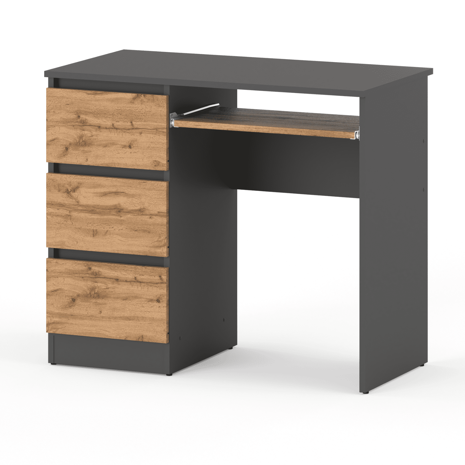 Računalni stol s 3 ladice 90 CM Sivi hrast Wotan Školski gaming potkrovlje