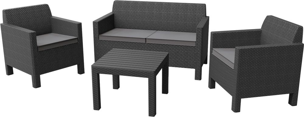 Vrtni set Garda uključuje stol, dvije udobne stolice i trosjed.