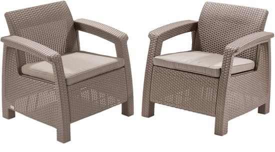 Allibert 2-dijelni komplet stolaca Corfu Duo, s jastucima, cappuccino