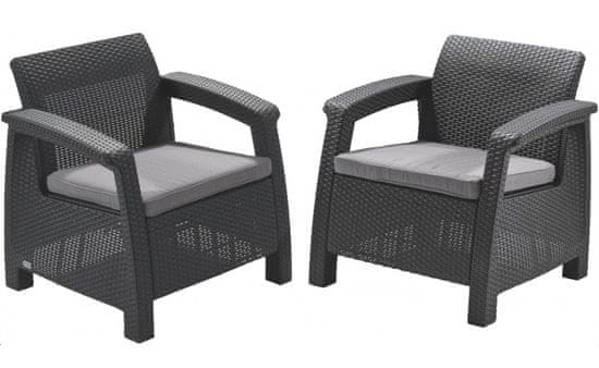 Allibert 2-dijelni komplet stolica Corfu Duo, s jastucima, antracit