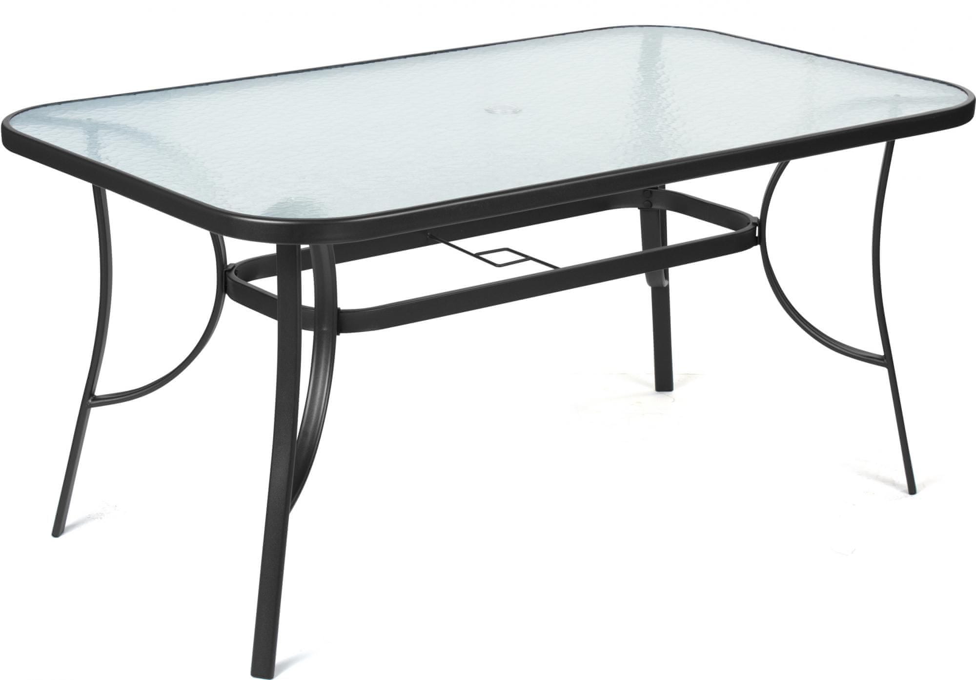 Staklo stola je kaljeno s otvorom u sredini u koji je moguće montirati suncobran. Stolice su ergonomski oblikovane, a sintetička podloga nudi veliku udobnost. Vrtni namještaj ne zahtijeva posebno održavanje te je prikladno za korištenje vani.