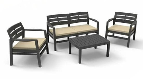 - Vrtni namještaj je elegantna i izdržljiva vrtna garnitura koja se sastoji od stola, dvije stolice i ljubavnog sjedala od PVC plastike i jastuka.