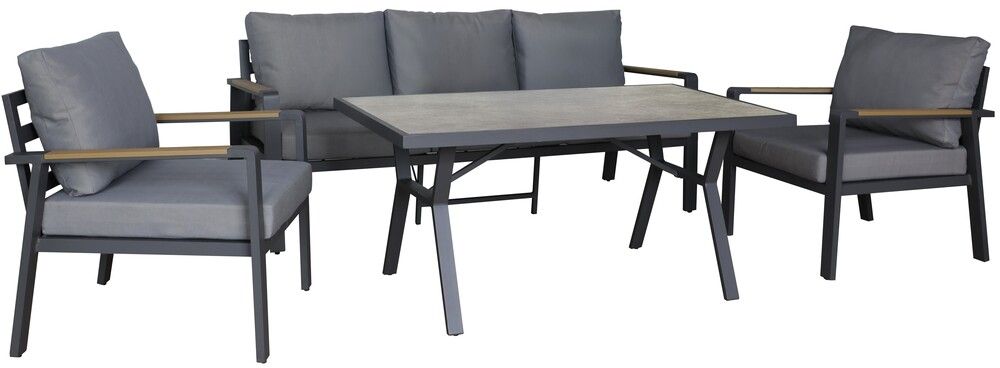 | Boja | Grafitna konstrukcija, tamnosivi jastuci, tamnosiva ploča stola s uzorkom kamena |