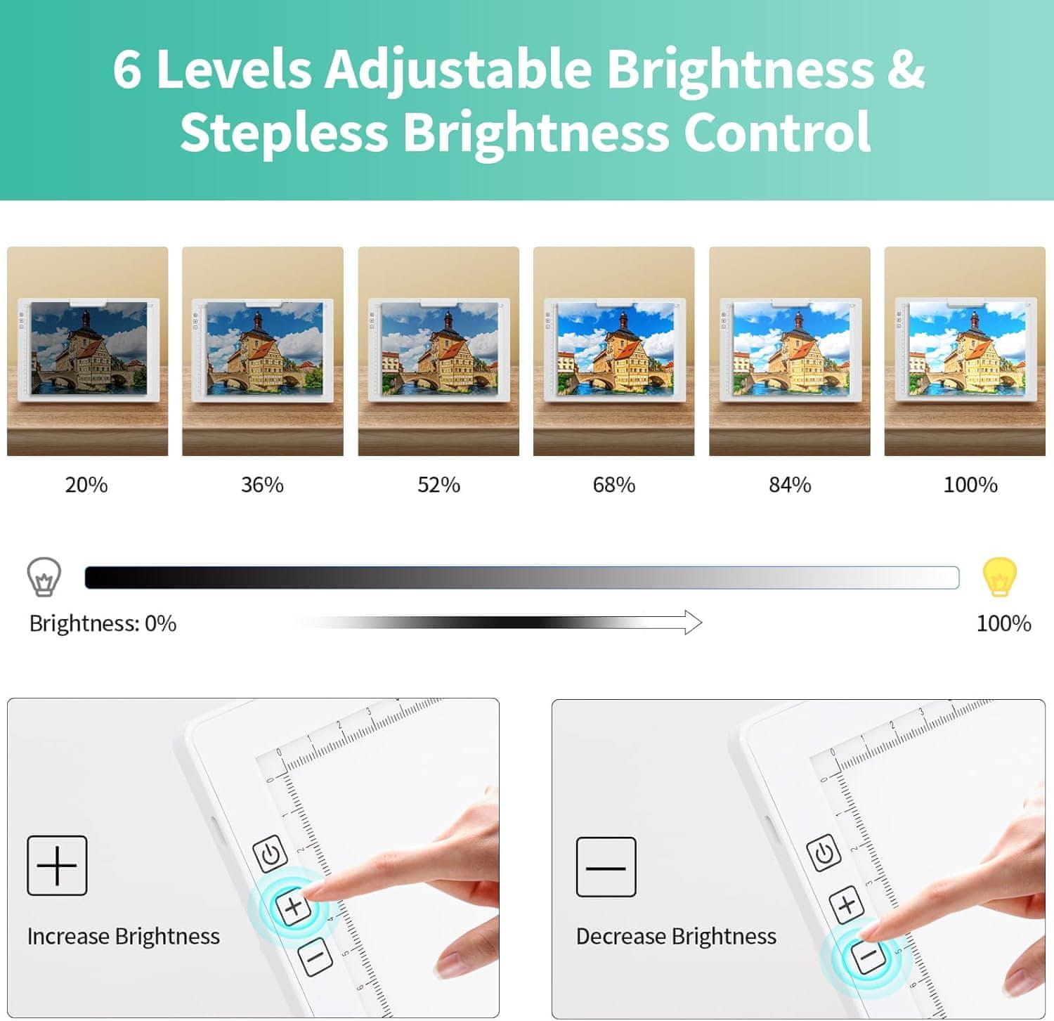 - Prilagodljiva svjetlina: nudi šest razina intenziteta svjetla i kontinuirano podešavanje od 0 do 100 posto za optimalne radne uvjete.