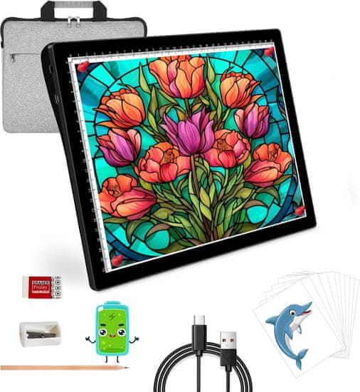 Nikcorp Svjetleća ploča za crtanje A4 LED, punjiva baterija, 5 razina svjetline, za dijamantni vez, skiciranje, USB, prijenosna konstrukcija