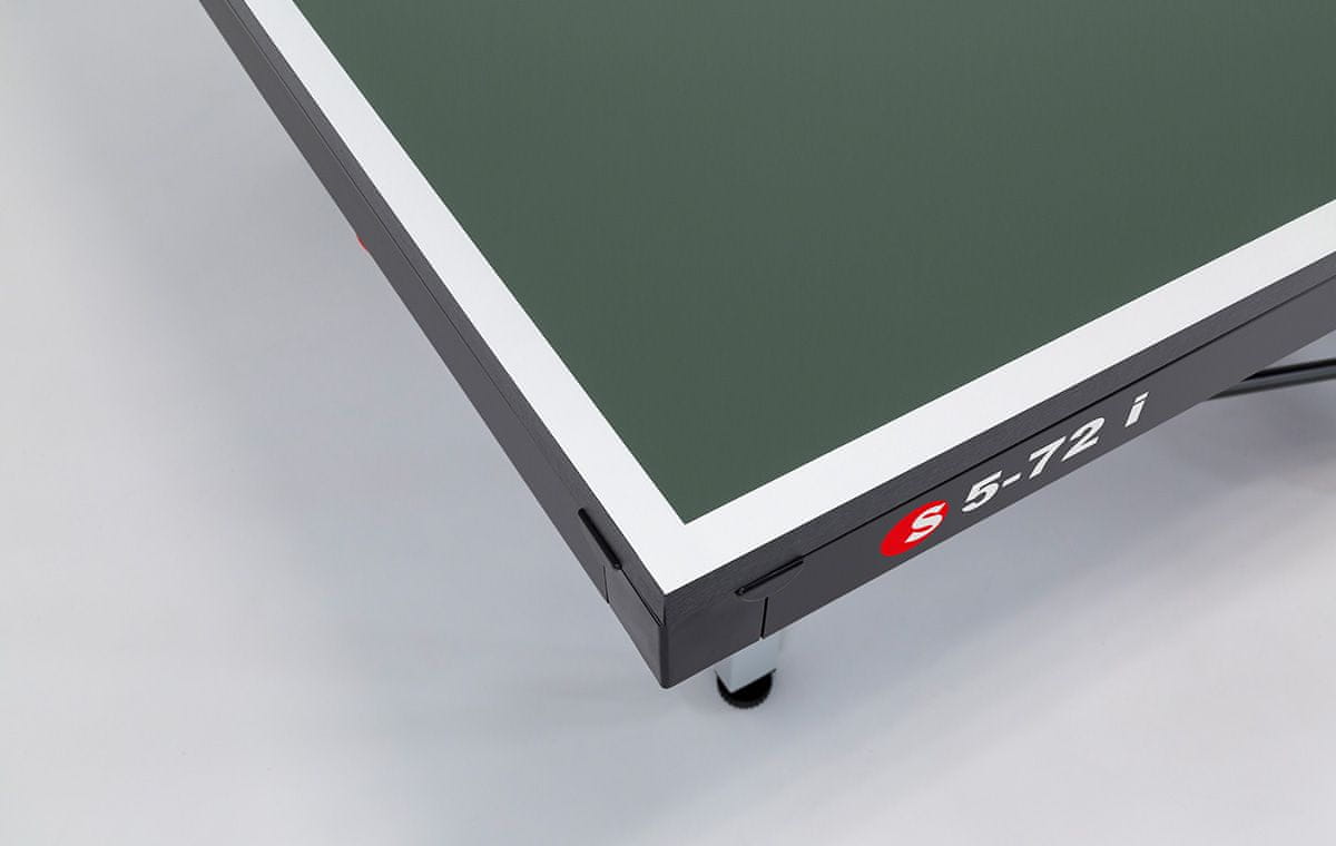opremljen je precizno obrađenom pločom od drvenih čipsa, čija je ukupna debljina narasla do izuzetne 22 mm . Vanjski slojevi su vrlo fini i snažno kondenzirani, što osigurava optimalnu površinsku strukturu, a time i savršen skok lopte. Pored toga, izrađena površina je ekološki prihvatljiva, što također potvrđuje certifikat PEFC . Cijela površina obrađena je u tri koraka primjenom osnovnih, obojenih i lakinskih slojeva.