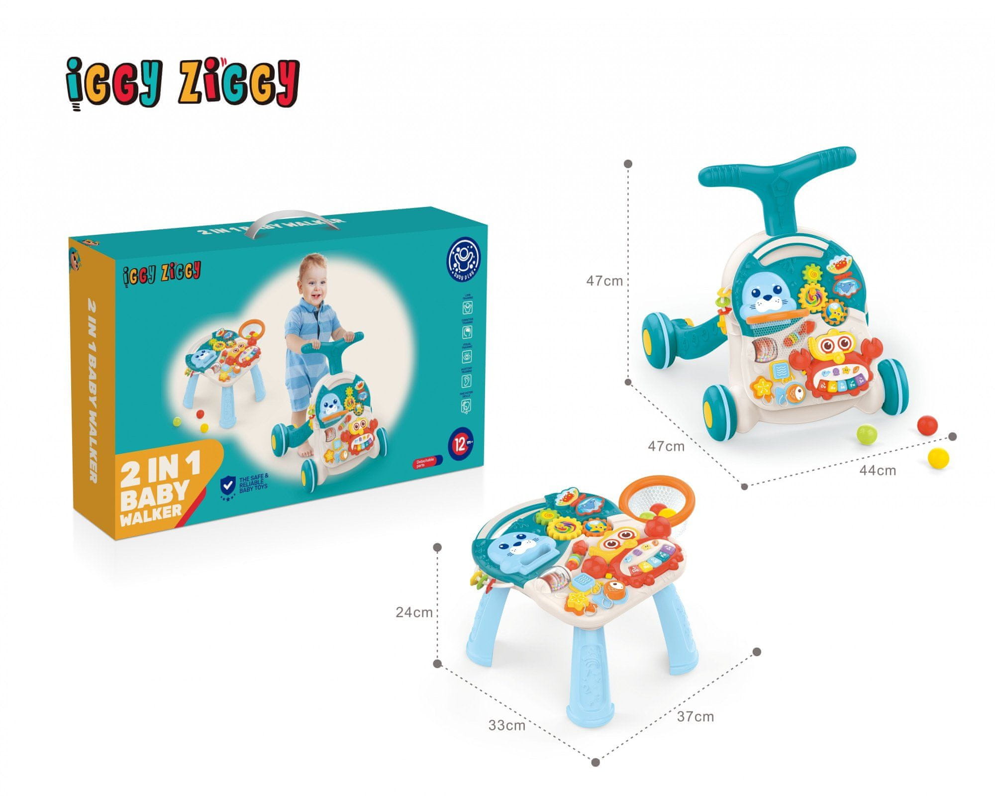 Iggy Ziggy 2-u-1 hodalica i stol pružaju priliku za istraživanje, učenje i zabavu dok vaše dijete raste i razvija se.