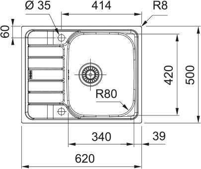 | Izrez na radnoj površini (Š x D) | 600 × 480 mm |