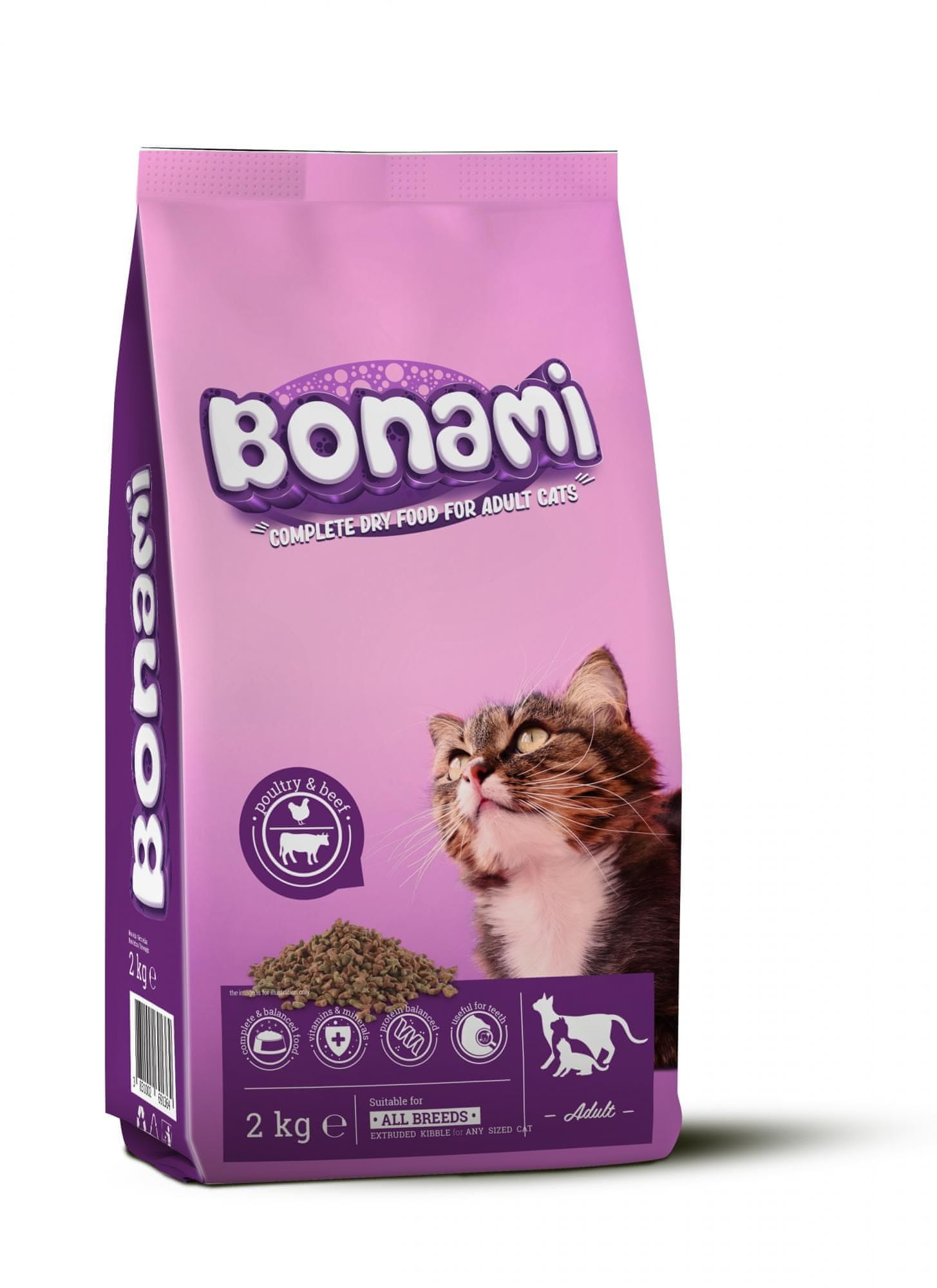 Bonami predstavlja savršenu hranu za odrasle mačke. Briketi od peradi i govedine savršena su, uravnotežena hrana za normalno aktivne odrasle mačke.