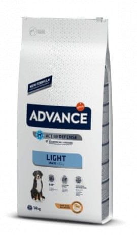 Dog MAXI Light marke Advance potpuna je i uravnotežena hrana dizajnirana posebno za odrasle pse velikih pasmina s prekomjernom težinom ili tendencijom dobivanja na težini (preko 30 kg težine u odrasloj dobi). Visok postotak vlakana koji pruža osjećaj sitosti i ima nizak sadržaj masti.