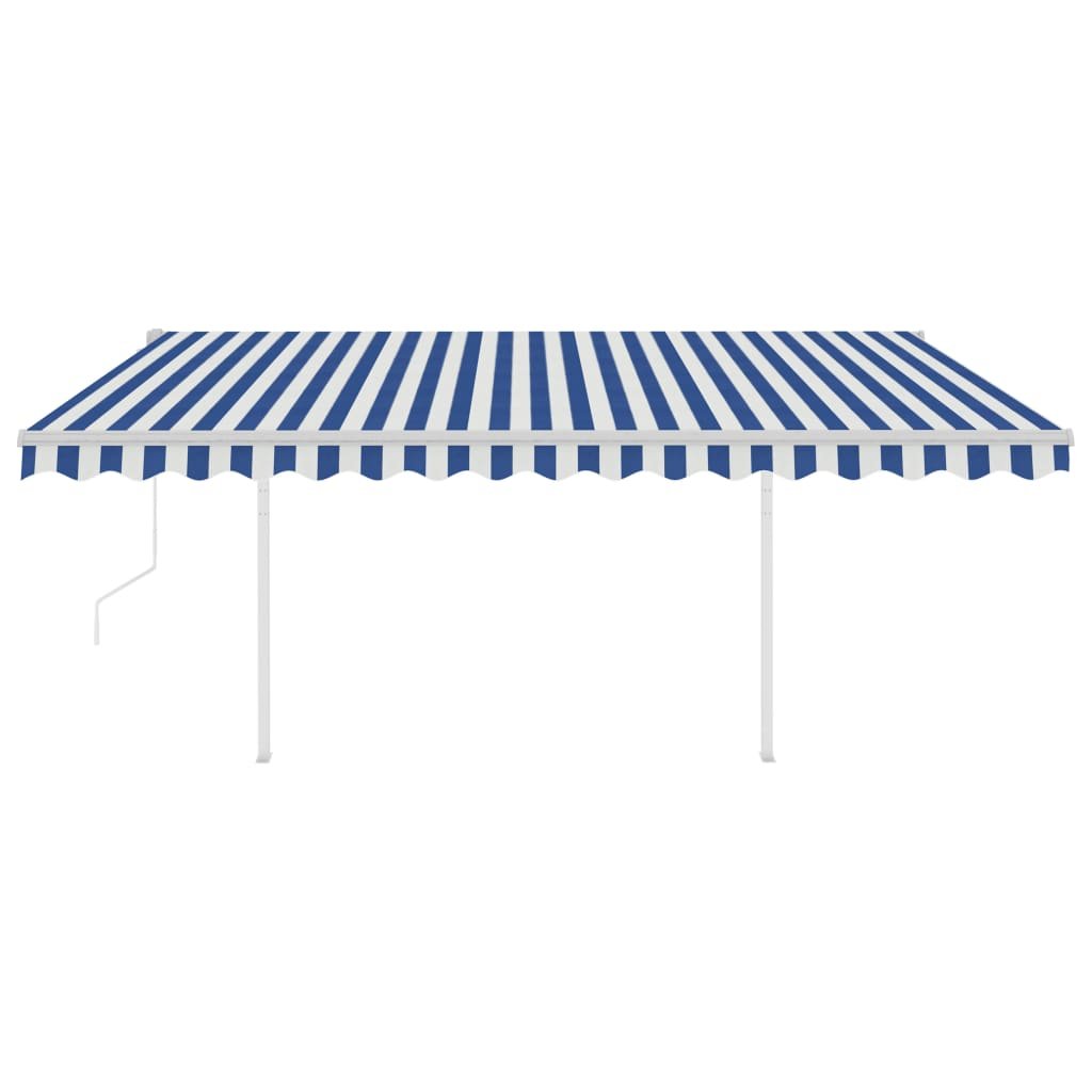 Vidaxl Automatska tenda na uvlačenje sa stupovima 4 x 3 m plavo-bijela