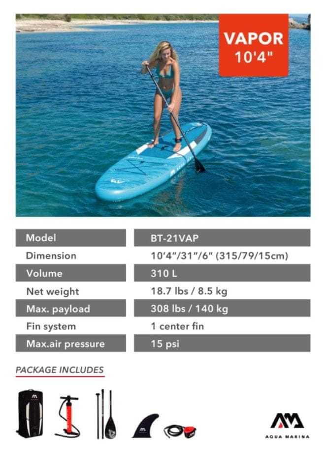 Aqua Marina BT-21VAP Vapor SUP na napuhavanje, 3,15 m, 15 cm