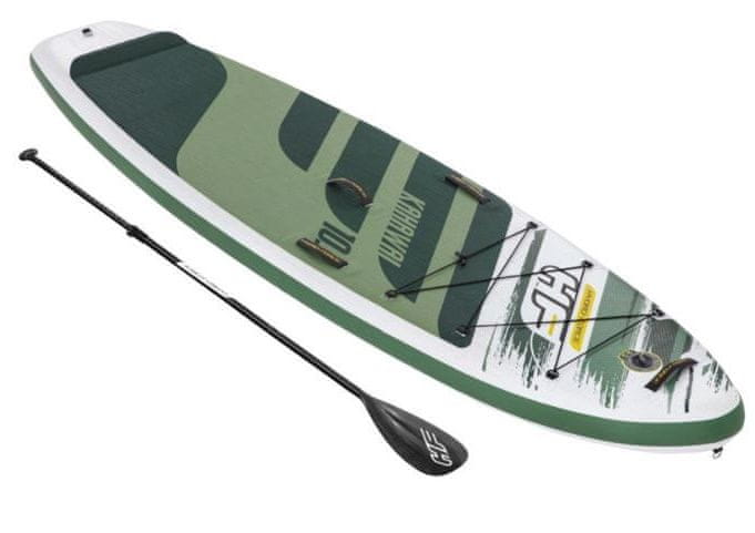 Sup na napuhavanje nosivosti 140 kg pogodan je za mirne vode s malim valovima. Set također uključuje veslo, pumpu, ruksak za nošenje, vezicu, središnju peraju i komplet za popravak. Cijeli opis