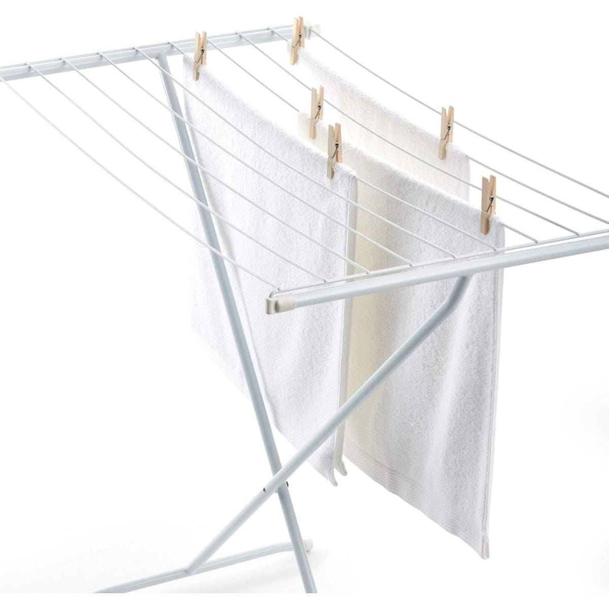 Rayen sušilica opremljena je s više razina sušenja koje omogućuju optimalno raspoređivanje odjeće – od manjih komada rublja poput čarapa i donjeg rublja do većih ručnika i košulja. Kad vam ne treba, jednostavno ga sklopite i spremite iza ormara, ispod kreveta ili u ormar. Zbog svoje lake konstrukcije, možete ga lako premještati iz sobe u sobu, ili čak na balkon ili terasu.