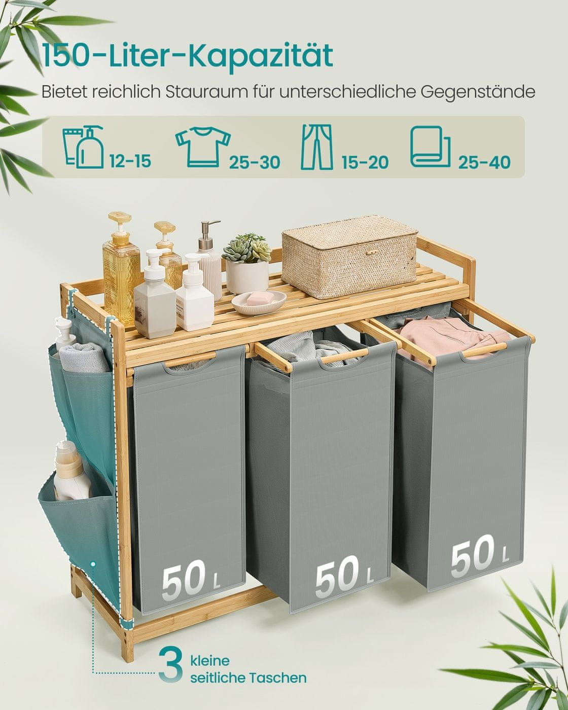 Ova košara za rublje s tri pretinca dizajnirana je da vam pomogne učinkovito sortirati i organizirati rublje. Njezine praktične značajke poput uklonjive vreće za rublje bočnih džepova i praktične gornje police čine je idealnom za održavanje vašeg prostora za pranje urednim i funkcionalnim. Elegantni dizajn savršeno se uklapa u svaki kućni ambijent pružajući i stil i funkcionalnost.
