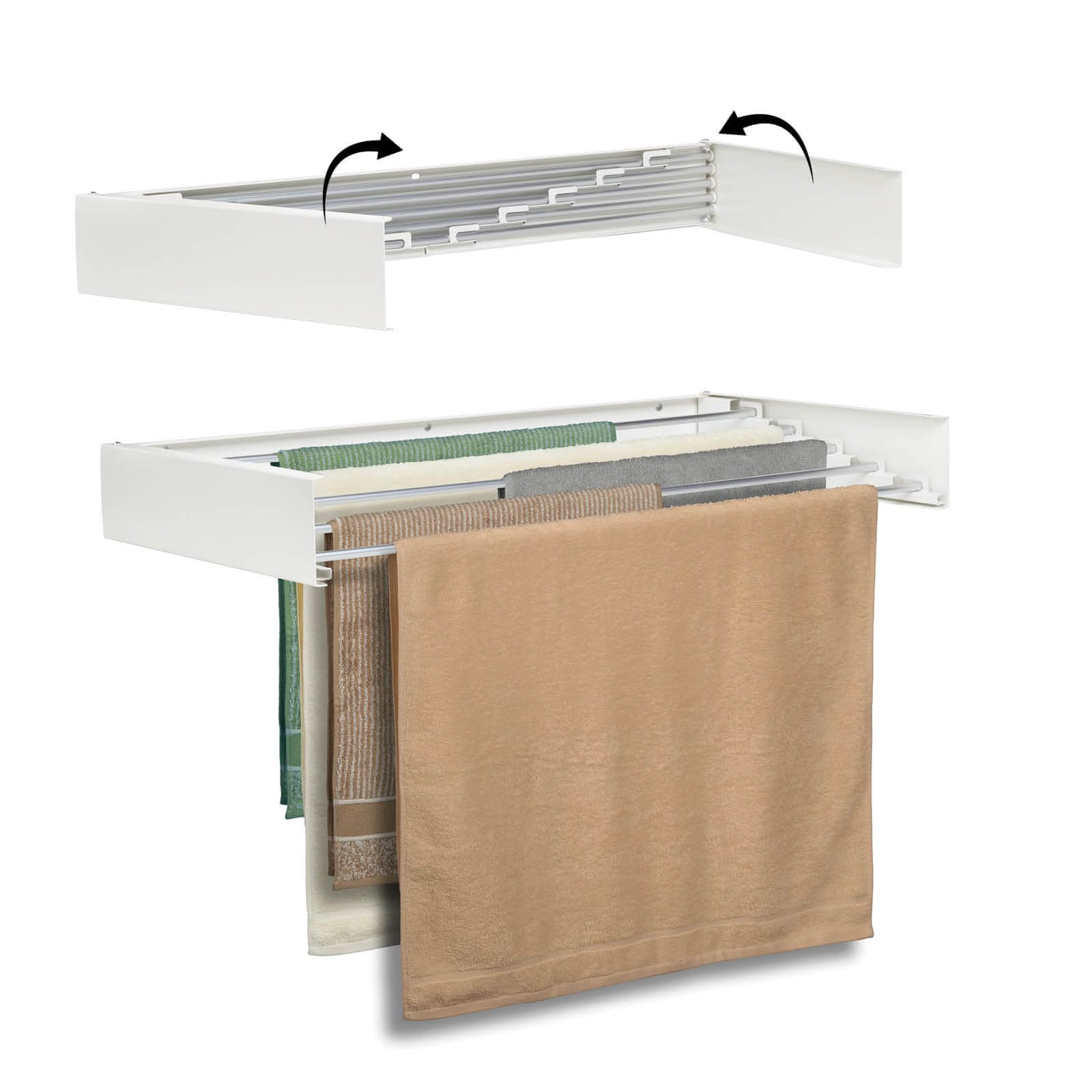 Može se pohvaliti inovativnim izvlačnim dizajnom. Kada se ne koristi, može se jednostavno sklopiti uza zid. Zbog svoje dobre nosivosti, prikladan je i za veće komade rublja.