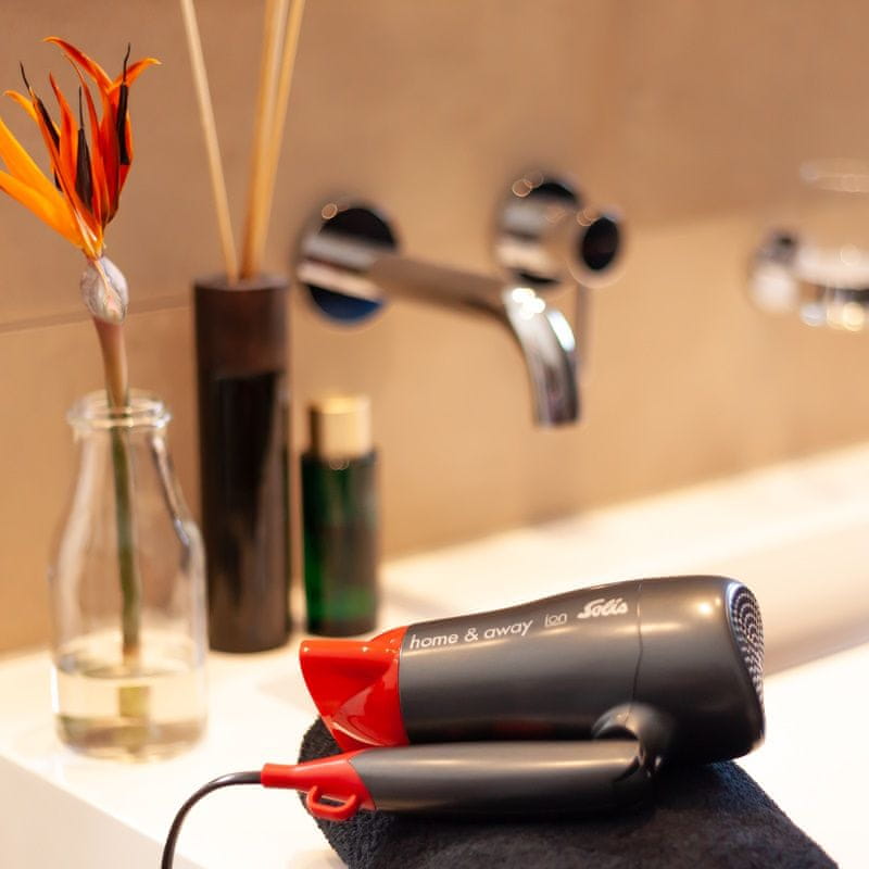 Upoznajte savršenog suputnika kojeg ćete ponijeti sa sobom na odmor, poslovna putovanja i vikend putovanja ili za korištenje kod kuće! Zbog svoje kompaktne veličine i sklopive ručke, Solis Home & Travel lako stane čak i u manje kofere kako bi vas pratio kamo god pošli, ali također štedi prostor kada se sprema kod kuće. Ovo putno sušilo za kosu dizajnirano je za upotrebu u cijelom svijetu jednostavnim podešavanjem napona za upotrebu s 220–240 V i 110–120 V.