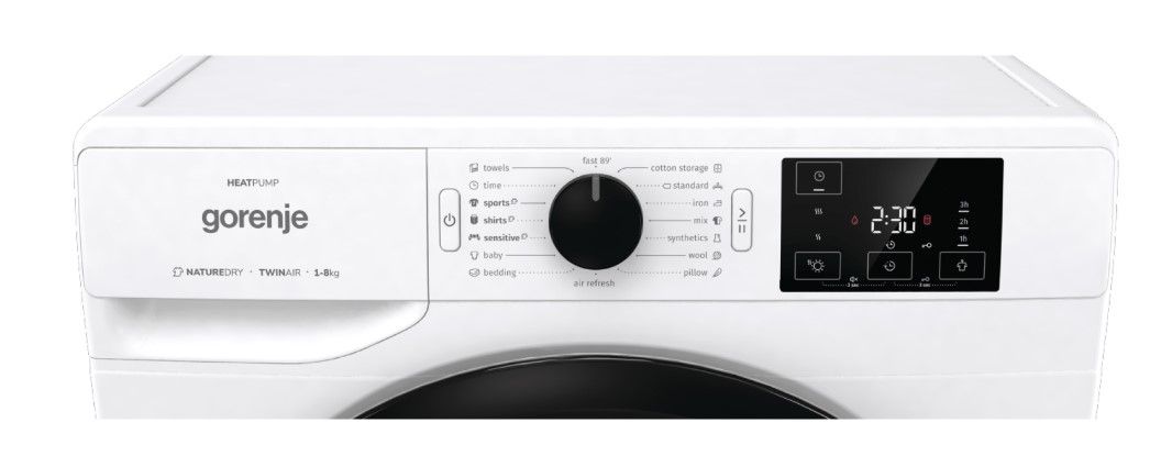 Gorenje D2NE82/GN kondenzacijska sušilica s toplinskom pumpom energetskog je razreda A++ i ima kapacitet sušenja do 8 kg. Velika vrata koja se otvaraju 180 stupnjeva osigurat će jednostavno punjenje i pražnjenje aparata. Sigurnosna brava za djecu osigurava da radoznale ruke ne mogu promijeniti postavke sušenja. Oprema s toplinskom pumpom osigurava ekonomično i nježno sušenje gotovo svih vrsta tkanina. Bubanj s šarama u obliku valova omogućuje nježno sušenje rublja, s manje nabora.