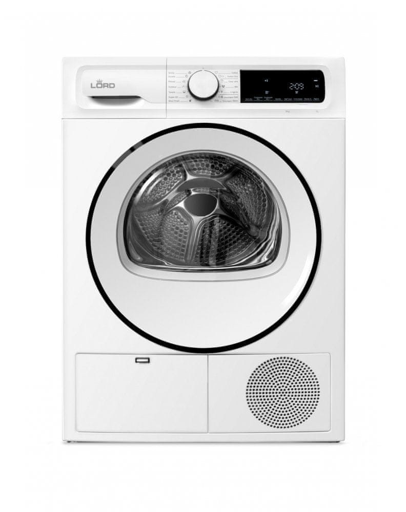 Kondenzacijska sušilica s toplinskom pumpom Lord T1 energetskog je razreda A++ i ima kapacitet sušenja do 9 kg. Sigurnosna brava za djecu osigurava da radoznale ruke ne mogu promijeniti postavke sušenja. Oprema s toplinskom pumpom osigurava ekonomično i nježno sušenje gotovo svih vrsta tkanina. Bubanj s jedinstvenom površinom omogućuje nježno sušenje rublja, uz manje nabora. Opremljena toplinskom pumpom osigurava ekonomičnije i učinkovitije sušenje. Rashladno sredstvo R290, s GWP vrijednošću od 3 označava ekološki prihvatljivo sušenje. Antivibracijske stranice osiguravaju stabilno i tiho sušenje.