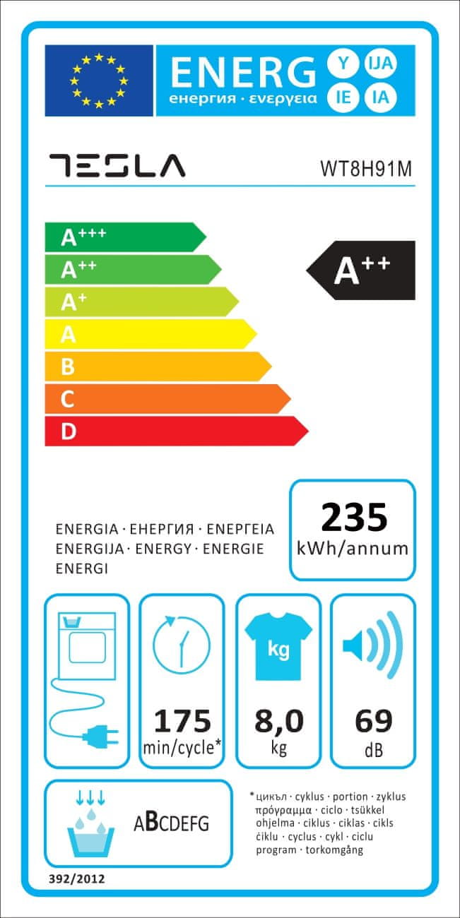 Tesla WT8H91M energetski je učinkovit kao i u visokoj klasi A++. Ima LED zaslon i veliki bubanj, koji omogućuje istodobno sušenje do 8 kg rublja.