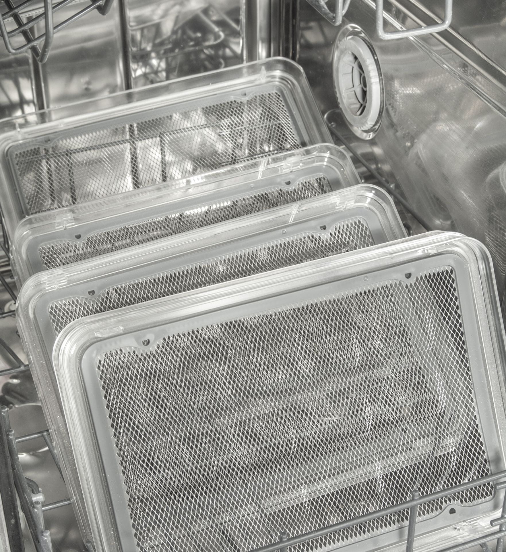 Sušilica hrane opremljena je s 5 posuda za sušenje podesivih po visini od tritana bez BPA, podesivi termostat i podešavanje vremena pomažu vam da odaberete pravu temperaturu od 35 °C do 70 °C. Sušilica ima optimalni protok zraka za ravnomjerno sušenje hrane bez pregrijavanja. Tako se optimalno čuvaju okus i vitamini, a komadiće ne morate okretati. Zahvaljujući prozirnim posudama za sušenje možete pratiti hranu tijekom procesa.
