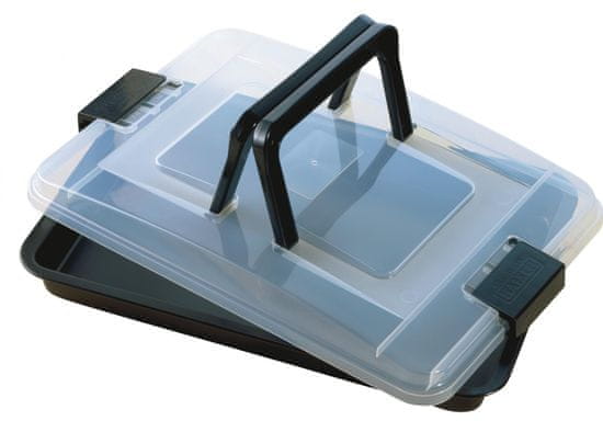 Pekač ima plastični poklopac s ručkom koja olakšava transport. Poklopac će održati sadržaj pekača toplim i svježim. Otporan je na niske i visoke temperature.